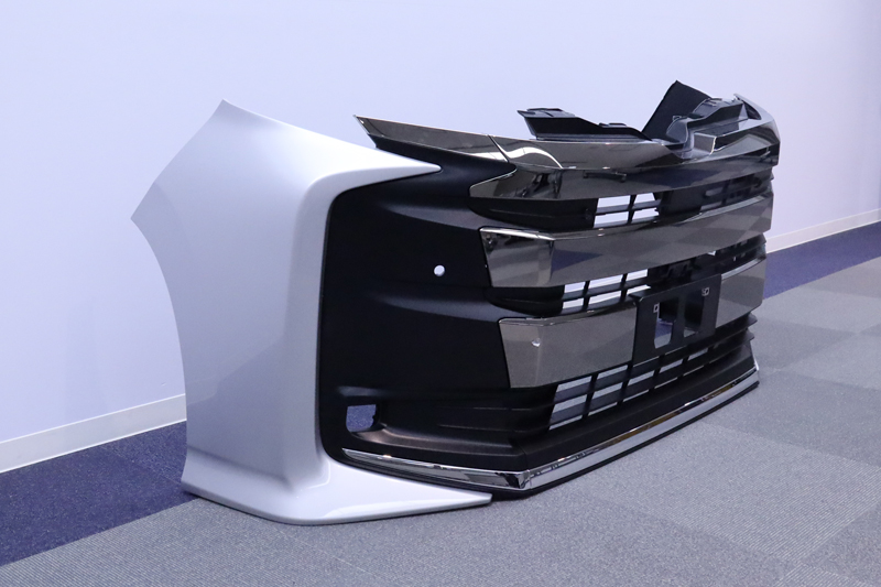 これらはフィルム加飾を適用する上での重要な課題です。私たちは研究・開発を進め、これらの課題を克服する方策を見出しております。バンパーのような複雑な形状であっても、しっかり貼り合せることができ、且つ均一な色を発現させることが可能です。