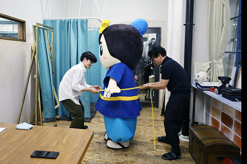 ひこぼしくんはかなり大きいので二人がかりで採寸