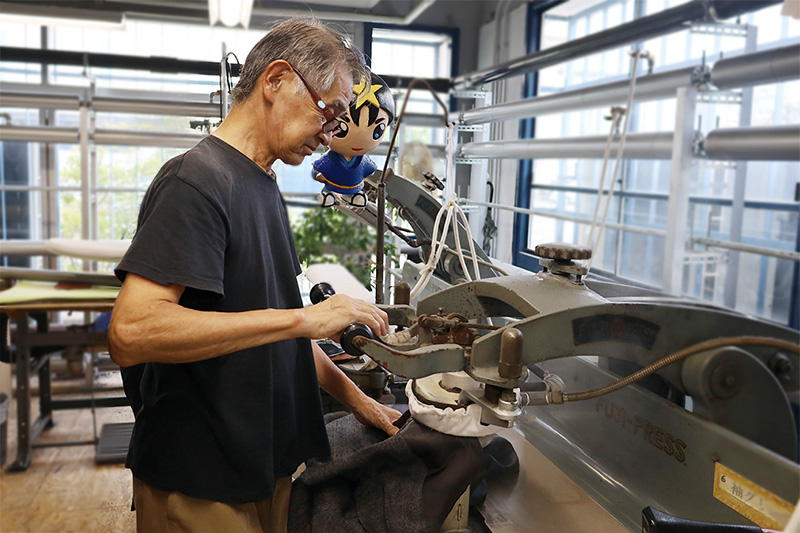 工場でオペレーターさん一人一人の高い技術を目の当たりにすると、いつまでも大切に着続けたいと思いますね!