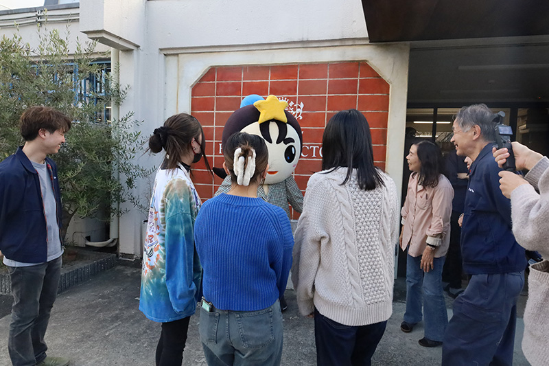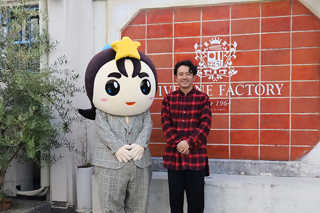 ひこぼしくんオリジナルスーツを着て、岩下工場長と記念撮影!