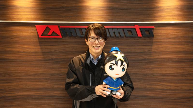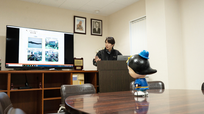 室本鉄工株式会社 石濵順也 社長から、真剣に話を聞くひこぼしくん
