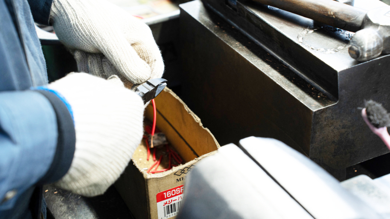 長谷部さん 「ニッパ」の製造工程は以上です。では次に、メリーカッタの切れ味を試してみましょう。