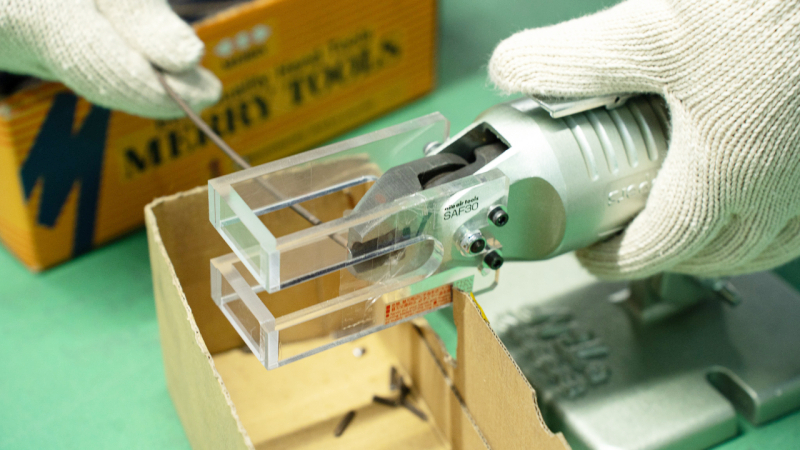 社長 当社は、プロのものづくりの人たちが扱う専門的な工具をメインに作っています。例えば車や機械を作る工場などで、金属を切ったり削ったり、鉄板に穴を開けることもできるんですよ。でも最近は、プラモデルやワイヤークラフトなど、趣味のシーンで愛用くださる方も増えています。