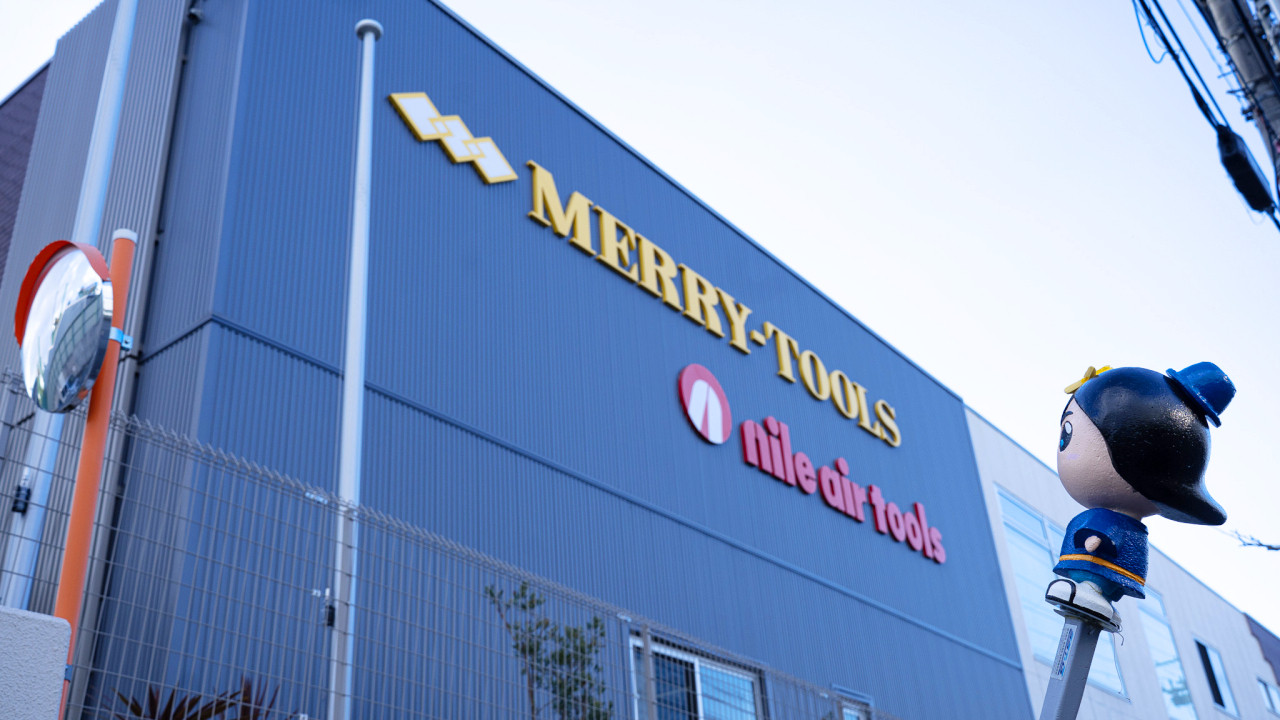 社長 そうです。創業は1927年1月で、以来、人の手で動かすハンド工具や、圧縮した空気の力で動かすエアー工具を作ってきました。今は 90 名ほどの従業員で、ハンド工具「MERRY(メリー)」とエアー工具「NILE(ナイル)」という2つの自社ブランド製品に加え、「こんなものが欲しい」というお客様のニーズに合わせたオーダー製品も多数作っています。
